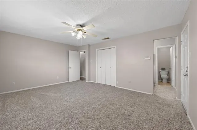 The kitchen offers generous cabinet storage, electric range, SS dishwasher, &' fridge. Both bedrooms include ceiling fans, &' the new carpet brings a soft, fresh finish to the private spaces. The primary bedroom stands out for its size, ensuite bath, &' direct access to the backyard, giving it a setup that feels both comfortable and functional. A dedicated laundry area adds another layer of convenience.