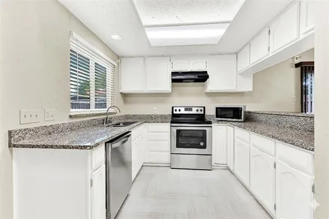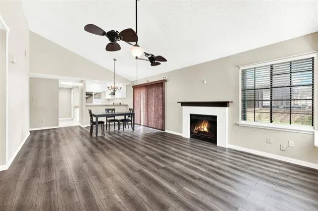 Welcome to this charming duplex, offering a well-maintained, move-in-ready home in a peaceful and desirable neighborhood. The open-concept living area creates a warm and inviting atmosphere, ideal for both everyday living and entertaining. A cozy fireplace anchors the living room, providing the perfect space to relax and unwind. The kitchen features ample cabinetry, offering plenty of storage for all your cooking essentials. Bright bedrooms filled with natural light create comfortable and serene retreats. Step outside to enjoy the side yard with a grassy area, while the spacious covered back patio provides an excellent setting for outdoor gatherings or quiet relaxation. Enjoy energy savings with solar panels that will be paid off at closing. Conveniently located near shopping, dining, and everyday amenities, this home also offers easy access to major roads and highways, making commuting throughout Arlington and the surrounding areas effortless. Combining comfort, convenience, and a welcoming neighborhood setting, this home is perfect for those seeking easy living. Schedule your showing today and discover all it has to offer.