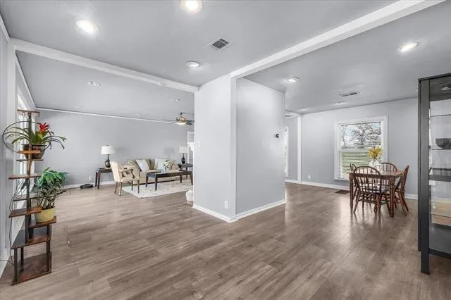 This is the one you do not want to miss! If you are searching for a beautifully updated home that offers privacy, space, and an incredible backyard retreat, this property truly checks all the boxes. From the moment you walk in, you will love the open concept layout featuring extremely spacious living areas, abundant natural light, and picturesque views through a stunning picture window. Recent updates make this home completely move in ready, including all new flooring throughout, fresh interior and exterior paint, a beautifully stained deck, and two tastefully updated bathrooms. The bedrooms feature brand new carpet, with the added bonus of original hardwood floors underneath! This property also offers incredible versatility with its many extra features. A 19×19 shop on a slab and additional shed provide the perfect space for hobbies, projects, or additional storage. The fenced side yard is ideal for a dog run, while the designated mud room offers a convenient space for an additional refrigerator or storage. Mature bamboo landscaping adds a wonderful sense of privacy to the yard. Step outside and enjoy your own backyard oasis featuring a beautiful gunite pool, perfect for cooling off during the Texas summers. With oversized outdoor spaces and both front and back decks, the home offers endless opportunities for relaxing or entertaining guests. One of the most charming features of the property is the peaceful view across the street where you can often watch cows grazing in the open pasture. The land across from the home is owned by the Texas Masonic Home, which helps preserve the beautiful open view and quiet country feel. The location is hard to beat. Within walking distance to the Entertainment District, shopping, and dining, just 20 minutes from the airport, and centrally located between Fort Worth and Dallas. What more could you ask for? This one truly has it all!