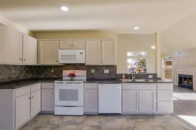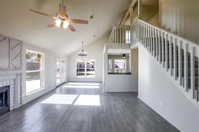 This beautiful home has been updated and is completely move-in ready, featuring Popcorn ceilings removed, fresh paint, plank flooring, carpet, recent windows in 2025 and ac in 2021 and roof in 2024. A list of replaced items in MLS. The thoughtfully designed 3 bedroom 2 bathroom, 2 car garage home boasts a split primary suite downstairs, complete with a remodeled bathroom, double sinks and sleek countertops. The primary bath also has 2 large walk-in closets. The large, open living room features a vaulted ceiling and a warm wood-burning fireplace. The kitchen showcases recent appliances and updated countertops, pretty backsplashes and replaced cabinets and fixtures. Upstairs a bright loft overlooks the living area, while two additional bedrooms offer walk-in closets, window seats and ceiling fans. There’s also a versatile bonus room, ideal for a study, craft room or a large storage area. Outside has all kinds of possibilities with it’s large open patio and an expansive yard that features a nice less than 1yr old workshop with ac, electrical panel and lots of outlets – perfect for any hobbyist. Most windows have been replaced throughout the home. The entire exterior boasts new siding, ensuring both curb appeal and low maintenance. This home is quietly tucked away but is very convenient to shopping, restaurants and highways and also has Mansfield schools! Don’t miss out on this one – it’s sure to please with this great price and updates. Survey is uploaded to mls