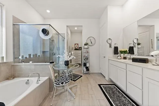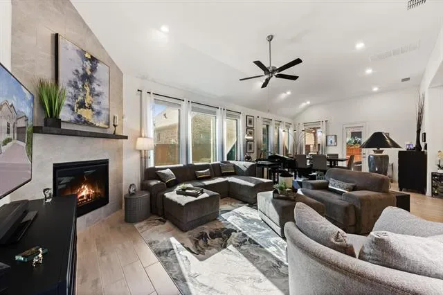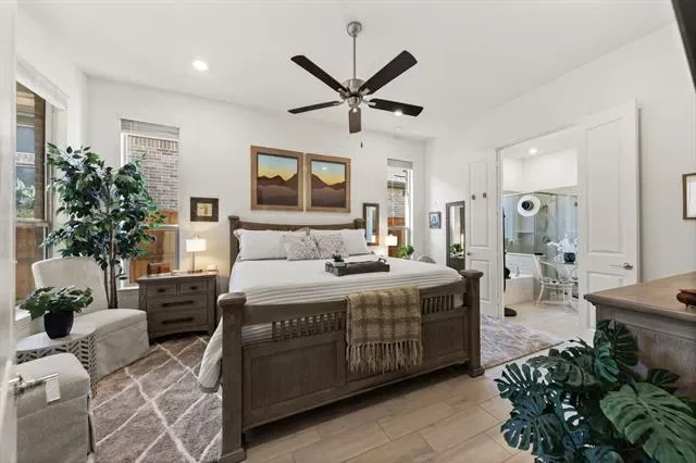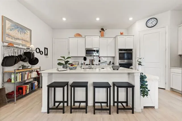 Welcome to maintenance free luxury living in the Elements at Viridian, Arlington’s premier 55+ active adult community, with access to both Elements AND Viridian amenities. LENNAR at MONROE floorplan. This is a one story 3 Bedroom, 2 Bath home and is 1,868sqft. The kitchen is open into the family room and breakfast nook with a large corner covered patio. Master bed &' bath is separate from secondary bed, bath and bedroom study. Includes wood look tile throughout home. GE Stainless appliances. $35,000+ worth of upgrades, including turfed maintenance free backyard and Water Purification System, 8 foot doors, covered patio, fireplace, 42 inch cabinets, LED lighting, wood wrapped garage door, stone and brick elevation. This home is turnkey and move in ready. Enjoy walkable access to Elements’ resort-style amenities, including clubhouses with lounge areas, a fitness center, demonstration kitchen, infinity-edge pool, pickleball courts, putting green, barbecue area, sculpture garden, dog park, and an on-site lifestyle director coordinating social events. Residents also enjoy Viridian amenities, including additional pools, miles of trails connecting to River Legacy Park, and access to Lake Viridian for kayaking, sailing, fishing, lap pool, fitness groups and more. Ideally located in north Arlington with easy access to DFW Airport, shopping, dining, entertainment, and major highways, this home is also just minutes from Globe Life Field, home of the Texas Rangers, AT&'T Stadium, home of the Dallas Cowboys, and Texas Live!, placing you near Arlington’s premier entertainment district.