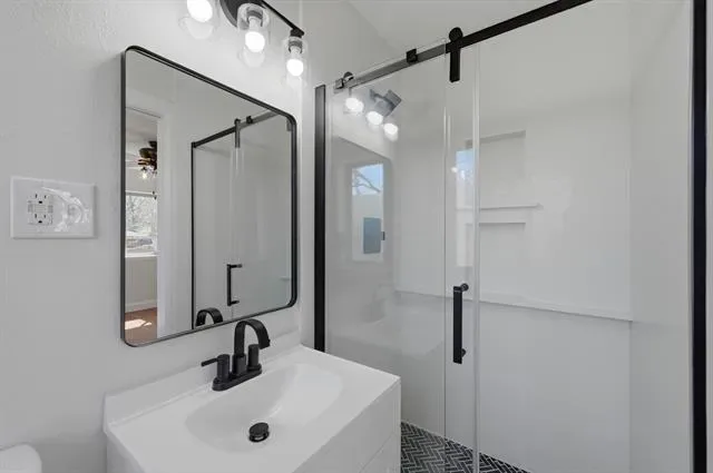 The kitchen features brand-new granite countertops with a custom granite backsplash that makes cleanup easy, along with a brand-new stainless steel appliance package. The bathrooms have been updated with custom quartz finishes and feature custom shower glass, adding a clean and modern touch.