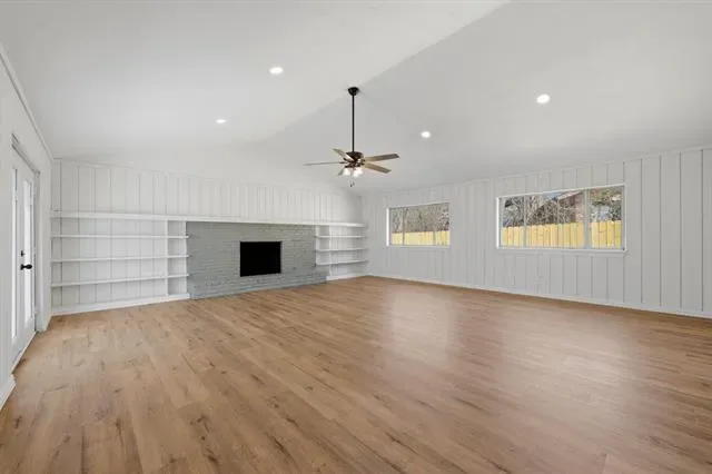 The oversized family room is sure to be a focal point of the home and a place to gather regularly, featuring a cozy wood-burning fireplace that adds warmth and charm. Throughout the home you’ll find new fans, fixtures, lighting, and updated door hardware that give the home a fresh, updated feel.