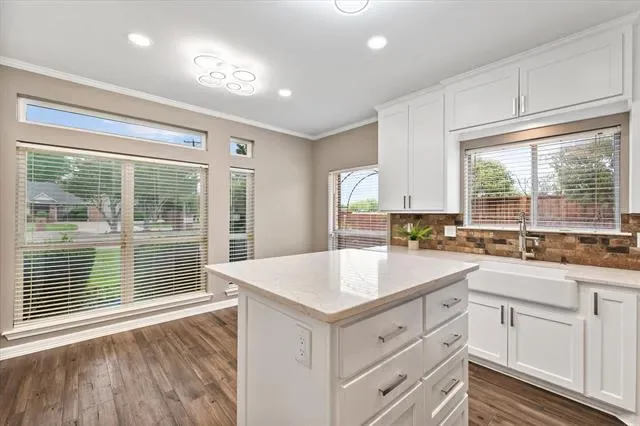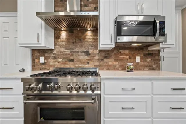 Chef’s Kitchen: Fully updated with custom cabinetry, quartz countertops, a farmhouse sink, and a professional ZLINE appliance suite. The space includes a massive walk-in pantry and an elegant dining area.