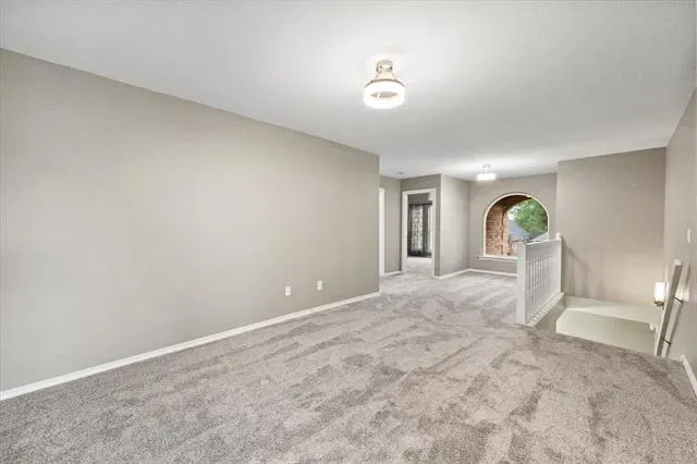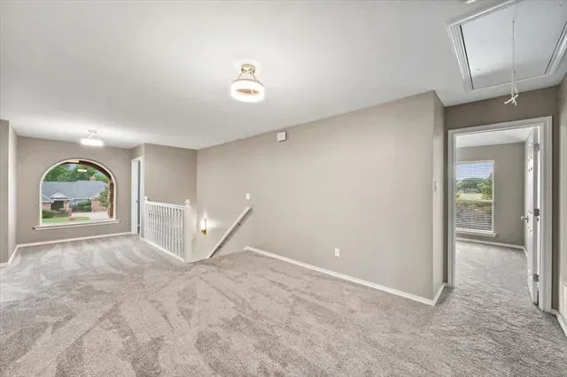 The upper level, finished with brand-new plush carpet, houses a second flex space and four oversized, light-filled secondary bedrooms.