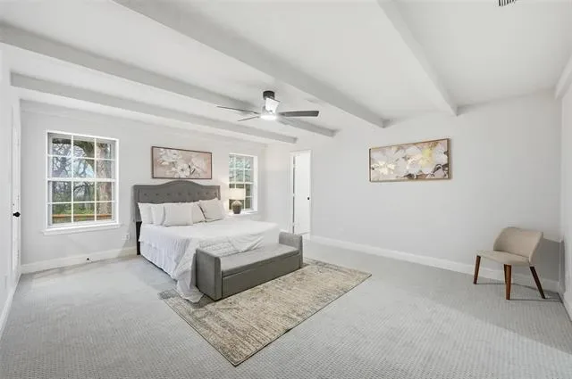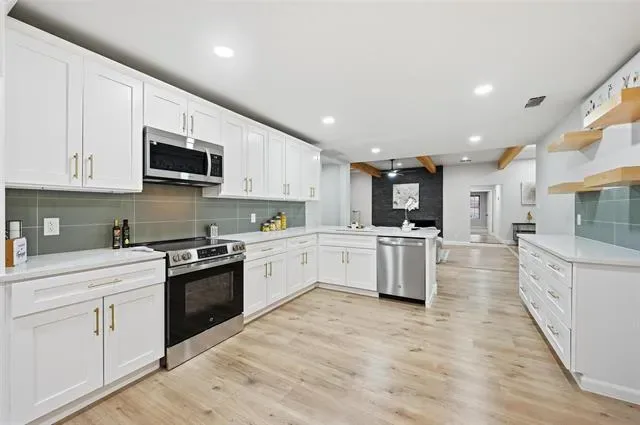 Thoughtfully updated, the home boasts a new roof, designer lighting, new flooring, upgraded doors, and a fully reimagined kitchen and baths. Inside, you’re welcomed by a dramatic floor-to-ceiling fireplace complemented by warm, exposed wood beams that create an inviting yet refined living space. The private office, located just off the main living area, provides flexibility for work, study, or a cozy retreat.