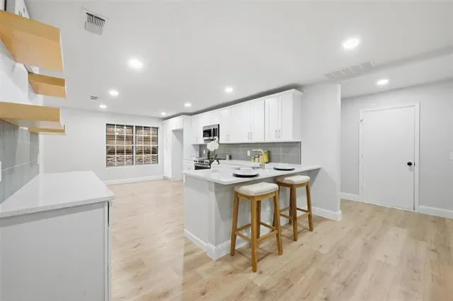 This exquisitely renovated 3-bedroom, 2-bath residence with a dedicated office offers timeless elegance and modern sophistication throughout. From the moment you arrive, the home impresses with stately curb appeal, featuring a sprawling front porch, mature trees, and beautifully established landscaping.