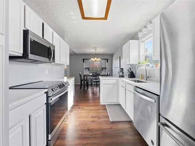Step inside to find brand-new flooring installed in early 2024, fresh throughout and ready for your furniture. The kitchen features updated appliances from 2023, making meal prep a breeze. Elegant French doors, added in 2024, open up the interior and bring in natural light.