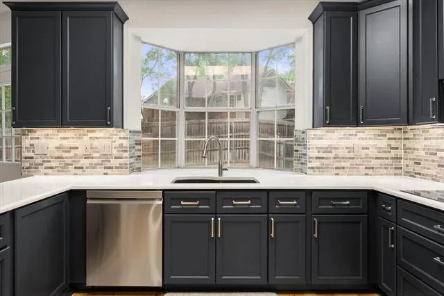 Tucked beside a greenbelt in one of Arlington’s most unique neighborhoods, this beautifully updated 4 bedroom, 2.5 bath home offers charm, space, and a setting you won’t soon forget. Including the neighborhood’s famous wild peacocks that make this community so special. Designed for both everyday living and entertaining, the home features a private office with built in shelving, formal living and dining rooms, and a dramatic main living area with high ceilings, built in bookshelves, and a decorative fireplace. The updated kitchen has been thoughtfully refreshed with updated flooring, cabinets, counters, appliances, soft-close cabinetry, and under cabinet dimmable lighting. All bedrooms are upstairs, giving the home a family friendly layout that keeps everyone close while allowing the first floor to function beautifully for gathering, hosting, and daily life. Upstairs, the spacious 18×19 media room is ready for movie nights and game days, complete with a dedicated 20-amp media line for clean theater sound. Recent improvements include a brand new roof in 2025, new exterior paint and select interior paint, new carpet in the secondary bedrooms, blown in attic insulation, reinforced wall insulation for better energy efficiency, and a side mounted insulated garage door. The northeast corner of the home is supported by steel foundation beams with a transferable warranty for added peace of mind. This is a rare opportunity to own an updated home in a truly memorable Arlington neighborhood with character, convenience, and a greenbelt backdrop.
