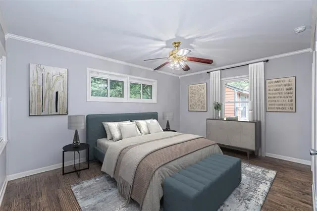 Virtual staging used in some photos to show use of space.