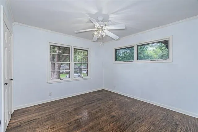 Discover this beautiful mid century ranch, perfectly situated on a large corner lot in the Forest Park neighborhood of Arlington. Step inside to find stunning refinished wood floors, a bright and welcoming layout, and a kitchen featuring a gas range, perfect for home chefs. Updates include HVAC and water heater in 2021, fireplace interior restoration and new glass double doors installed off the family and dining room in 2025. The 4th bedroom has room to add an ensuite bathroom and could be converted into a second primary or guest suite.
