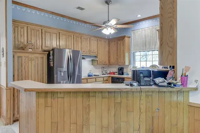 PRICE REDUCTION!! HOME QUALIFIES FOR SPECIAL FINANCING – CALL TO INQUIRE!! This beautifully maintained 4-bedroom, 3-bath home sits on just under half an acre, surrounded by gorgeous mature trees that offer shade, privacy, and natural beauty. The spacious layout combines classic elegance with everyday comfort, ideal for both entertaining and relaxed living. Step inside to a formal living and dining area featuring crown molding, wainscoting, chandeliers, a cozy wood-burning fireplace, and a wet bar—perfect for gatherings or quiet evenings at home. The bright, open-concept kitchen boasts double ovens, a peninsula with seating, and a cozy breakfast nook, all flowing seamlessly into the family room. It''s a warm and inviting space for cooking, dining, and spending time together. The primary bedroom suite is a true retreat, complete with a tray ceiling, large window, and a spa-like en-suite bath featuring a jetted tub, separate walk-in shower, skylight windows, and a spacious walk-in closet. Three additional bedrooms include a convenient Hollywood-style shared bathroom, offering both function and privacy. With plenty of outdoor space, beautiful trees, and timeless interior details, this home combines space, comfort, and charm—ready for you to make it your own. Close-by all the amenities of Arlington! All stores, shops, dining, Texas Rangers, Dallas Cowboys and Texas Live!! **Bonus Washer, Dryer and Fridge included with acceptable offer**