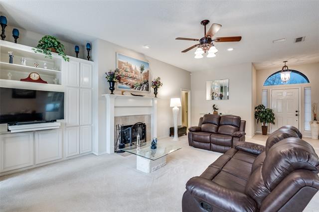 Located in desirable SW Arlington near US Hwy 287, this impeccably maintained full-brick home offers enduring craftsmanship in a small subdivision known for pride of ownership and low turnover. The J-swing garage and aggregate driveway create standout curb appeal and additional parking space for guests. Inside, rich custom built-in cabinetry in both the living area and dedicated office adds architectural character, abundant storage, and a refined, upscale feel rarely found at this price point. The family room centers around a handsome wood-burning fireplace framed in tile, detailed columns, and a substantial wood mantel—creating a warm, inviting focal point. The kitchen is both functional and beautifully appointed with built-in electric appliances, a sit-in bar top, walk-in pantry, travertine stone backsplash, and a dry bar featuring glass inlay cabinets for elegant display and entertaining. A wide, open pass-through with decorative shelving enhances the flow between spaces. Enjoy casual meals in the bright breakfast nook or host gatherings in the formal dining room. The split primary suite is a true retreat with bay windows and a spacious ensuite bath offering dual vanities, separate walk-in closets, a garden tub, and separate shower. A large, covered patio with soaring 10-foot ceilings overlooks the expansive, level backyard with mature grass and a large, custom brick patio—ideal for outdoor entertaining. Convenient to major employers, shopping, dining, and higher education, this is a rare opportunity to secure a meticulously cared-for home in an established, highly accessible location.