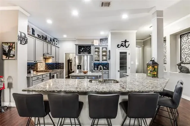 The kitchen is a true showpiece — designed to impress and built to perform. Anchored by a stunning island, you’ll find not one, but two built-in coolers. One serves as your go-to beverage station, keeping refreshments perfectly chilled and within arm’s reach while hosting guests or enjoying a relaxed night in. Whether it’s sparkling water, craft soda, or a perfectly chilled bottle of wine, everything has its place. This space was made for gathering.