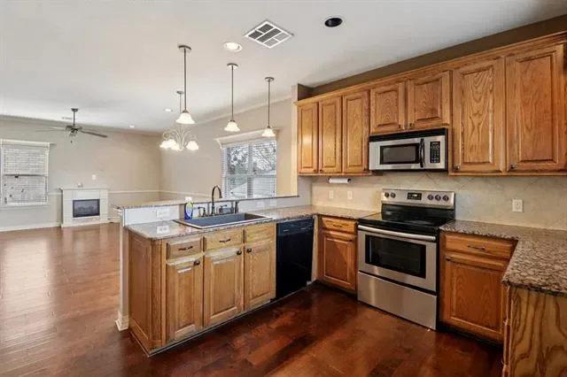 HUGE Price Drop!!!! Tucked away on a cul de sac in the gated Georgetown community, this custom built garden home offers spacious living in a prime Arlington location just minutes from AT&T Stadium and with easy access to Fort Worth, Mansfield, and Dallas. The open concept design creates a seamless flow between the living and dining areas, ideal for everyday living and entertaining. The kitchen features custom cabinetry, granite countertops, tile backsplash, breakfast bar, and stainless steel appliances. Thoughtful upgrades include wood flooring, electric fireplace, crown molding, an oversized garage with built in storage, and an AC replaced in 2025. A versatile 4th bedroom or bonus room offers the flexibility to be used as a home office, game room, or additional living space. Residents also enjoy access to the community pool. Ask about special incentives and interest rate options.