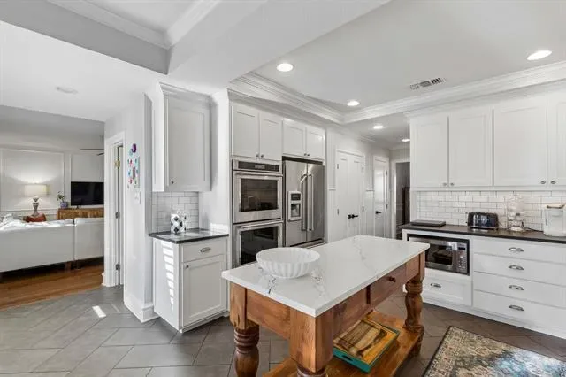 Nestled in the desirable Georgetown Addition of Southwest Arlington, this classic custom traditional home offers space, character, and privacy on a beautifully treed lot. Featuring 4 bedrooms, 2.5 baths, and approximately 2,589 square feet, the home sits on a generous 0.34-acre lot in a quiet, established neighborhood. Inside, the thoughtfully designed layout includes a formal living room or study with fireplace, an elegant formal dining room, and a spacious family room that opens to the kitchen. The kitchen offers abundant cabinetry, a built-in desk, and excellent workspace, creating a functional hub for everyday living and entertaining. The primary suite is generously sized, while three additional bedrooms provide flexibility for family, guests, or a home office. Step outside to enjoy the large, private backyard shaded by mature trees, perfect for relaxing or entertaining. Additional highlights include extended parking, an electric gate, and a wood-and-iron privacy fence. Residents of this charming neighborhood also enjoy access to a private lake park, adding to the community’s appeal. With its spacious floorplan, abundant character, and peaceful setting, this property offers a rare opportunity to own a classic Arlington home on a large lot in an established community.