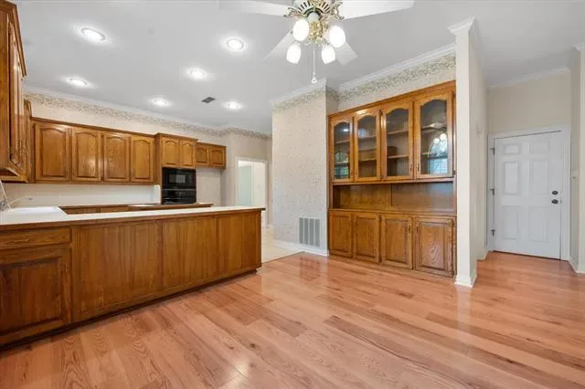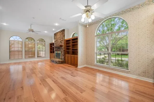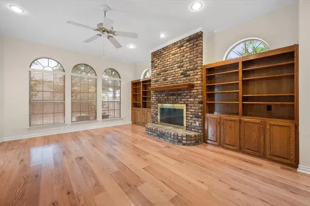 Step into timeless charm with this one-owner one story home nestled in esteemed, established Georgetown Subdivision. Thoughtfully designed with both functionality &' style in mind, this residence offers two spacious living areas &' two dining spaces, perfect for everyday living. Fresh paint throughout add to the appeal. The heart of the home features a warm &' inviting back living room, highlighted by LVP flooring, a classic brick fireplace &' custom built-in shelving on either side of the fireplace. A wall of windows facing the back and side allows for natural light to flow into the space. An open-concept layout seamlessly connects this area to the kitchen, creating an ideal design for gatherings. The kitchen is a chef’s delight, boasting abundant cabinetry, generous prep space, a center island &' a breakfast bar with built-in hutch for additional seating &' storage. At the front of the home, you''ll find elegant formal living &' dining areas filled with natural light streaming through expansive windows, complemented by beautifully maintained wood flooring. A dedicated office with French doors &' closet provides the perfect work from home retreat or flex space. The large sky lights make the space bright. The spacious primary suite offers a peaceful escape, complete with bench seating, two closets &' a well-appointed ensuite bathroom featuring a relaxing garden tub, separate shower, &' ample space to unwind. A secondary full bathroom is conveniently located for everyday use. Additional highlights include a generously sized laundry room with folding area &' a 24×20 side-entry garage equipped with an electric gate for added privacy &' security. The extended concrete areas in the backyard create a versatile outdoor space ideal for entertaining, all while maintaining a low-maintenance yard. Recent updates include: Class 4 roof, gutters and solar screens and energy efficient water heater.