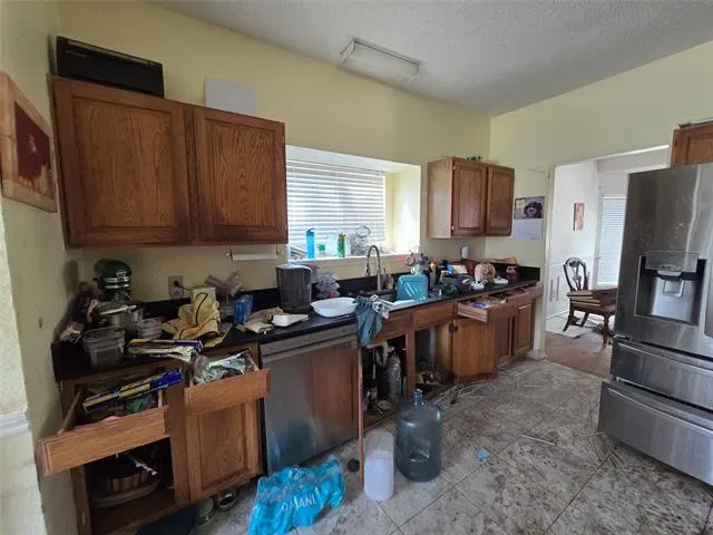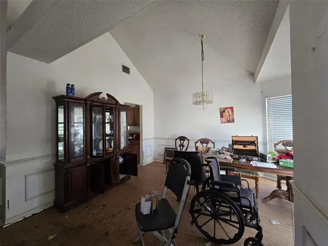 Investor special with endless potential! Roll up your sleeves and bring your vision to this 3-bedroom, 2-bath home featuring great bones and a spacious layout. The large living room boasts vaulted ceilings and a cozy wood-burning fireplace, creating a stunning transformation after a little imagination. Enjoy two dining areas and a generously sized kitchen equipped with stainless steel appliances, including a refrigerator and microwave. The exterior offers a combination of brick and vinyl siding with a front-entry 2-car garage. The oversized primary suite includes its own fireplace and an ensuite bath with a soaking tub and separate shower—ready to be reimagined into a true retreat. Major system update includes a newer Lennox HVAC system (April 2021). Perfect for investors or handyman buyers looking to add value—bring your creativity and reap the rewards! All offers MUST be on a TREC 1-4 Family Contract to be considered. Email offers will not be considered. Home has been winterized and there is currently no electricity on.