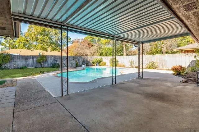 Move In Ready Home on a Large Corner Lot with Pool! This home is full of character and offers an attractive layout featuring; 4 bedrooms… 3 with ensuite baths, and tons of storage space throughout. Updates Include; Newly Painted Interior, Beautiful Updated Wood Floors, Updated Half Bath, Granite Counter tops with subway tile backsplash in Kitchen, New Kitchen Refrigerator- Included, Updated Vinyl Windows throughout, New Gutters and a Newer roof installed in 2021. The backyard is the oasis you’ve been dreaming of with a spacious covered patio, large in ground pool with a deep end, and two sheds. Within walking distance to Hill Elementary and Bailey Jr High. Also near walking trails, parks, shopping and restaurants. Only 10 minutes from the heart of the University of Texas at Arlington, the Stadiums and the impressive Entertainment District.