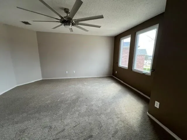 Ceiling fans are installed throughout the home for added comfort. All bedrooms are located upstairs, providing privacy and a functional layout. The primary suite features an upgraded bathroom and generous closet space for extra storage. Upstairs you’ll also find a versatile media room, ideal for movie nights, a game room, or a home office.