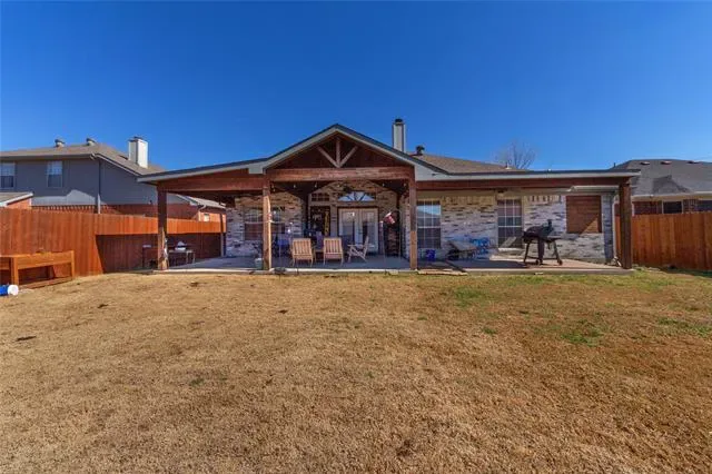 The primary suite features stylish barn doors with an oversized walk-in shower for a spa-like retreat. Step outside to a generous backyard complete with a charming covered patio—ideal for family gatherings, celebrations, and weekend cookouts.