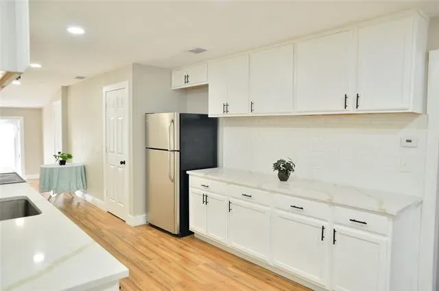 So perfect for a large family, College students or is zoned for an Airbnb. Two private master suites with outdoor access, one with and a separate living area. For the utmost privacy, each bedroom is separated. Third bedroom also has door to outside. If the formal dining area is not used, the main living room could measure up to 33’ by 27’. The kitchen has ample room for an eating area &' features a farm sink, gorgeous Quartz countertops, and numerous cabinets. A cozy bonus room would make a wonderful computer room or reading room. There is a handy door to the outside of separate utility room. Create a haven in Hugh backyard and relish parties and dinners throughout the summer. Two driveways offer additional space for vehicles, boats, or recreational vehicles. All in all, this home would be perfectly ideal for college students looking to rent a home, or even perfect Airbnb experience since attractions and entertainment such as the AT&'T stadium and Texas live are about 10-15 minutes away!