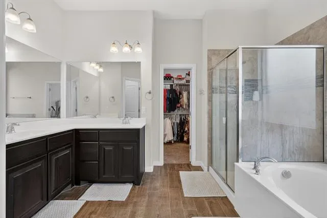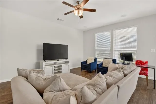 Located in a secure gated community within Mansfield ISD and zoned to Mansfield Legacy High School, this beautifully maintained 4-bedroom, 2.5-bath home, built in 2020, offers 2,544 square feet of thoughtfully designed living space. Blending comfort, functionality, and modern convenience, this home is well-suited for today’s lifestyle. The inviting open-concept layout creates a seamless flow between the main living area, kitchen, and dining spaces, making it ideal for both everyday living and entertaining. Large windows throughout fill the home with natural light, enhancing its bright and welcoming atmosphere. The private primary suite provides a relaxing retreat with an ensuite bath featuring dual sinks, a garden tub, and a separate shower with a built-in bench. Upstairs, a spacious game room offers the perfect setting for a second living area, media space, or playroom. All secondary bedrooms are generously sized, offering comfort and flexibility for family, guests, or work-from-home needs. This tech-savvy home is equipped with a HomePro smart home system, allowing remote access to key features for added convenience and peace of mind. Beyond the home itself, residents enjoy access to a community pond, pavilion seating, and a fireplace near the water, offering a peaceful place to unwind and connect with neighbors. Conveniently located near shopping, dining, and major commuter routes, making it an exceptional opportunity to enjoy comfort, security, and modern living in one desirable property.