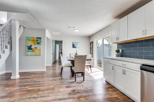 Welcome to 2314 Gilbert Circle, a charming home tucked away on an inner lot in heart of Arlington. This property offers a functional layout with inviting living spaces, making it great for a growing family. The living room flows into a eat-in kitchen with a spacious remodeled kitchen. Designer backsplash creates a pop of color and warm touch. Natural light is a bonus in the eating area with a sliding door to the backyard. The large backyard is perfect to relax, play, and entertain. Conveniently located near schools, shopping, dining, and major highways, this home offers easy access to everything Arlington has to offer while still providing a peaceful residential setting. There is an upstairs area that could be used for storage, workout area, or reading area. The home has been completely remodeled, both bathrooms have been updated. Must see this move in ready home. Buyer and buyers agent to verify listing information including, but not limited to square footage and schools. Don’t miss out on this great opportunity in Arlington.