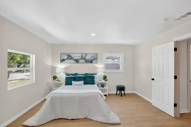 Discover modern elegance in the heart of Arlington with this immaculately renovated home. Nestled on a serene tree lined street, this stunning residence boasts a freshly painted interior and exterior that exudes charm and sophistication. Step inside to find luxurious plank flooring that seamlessly flows through each room, enhancing the home''s open layout. The kitchen is a chef''s dream, equipped with gleaming new granite countertops and state-of-the-art stainless steel appliances, ready for your culinary masterpieces. With ample space for both casual dining and grand entertaining, this home caters to every occasion. Venture outside to an oversized backyard oasis with covered patio, perfect for barbecues, playdates, or simply enjoying a quiet evening under the Texas stars. This expansive outdoor space provides two sheds for storage and endless possibilities for a personal retreat creation. Conveniently located close to Texas Live entertainment district, shopping centers, and easy interstate access , this property not only offers unparalleled beauty but also a lifestyle of ease and connectivity. Don''t miss your chance to own this remarkable slice of Arlington—where elegant living meets everyday comfort. Your dream home awaits!