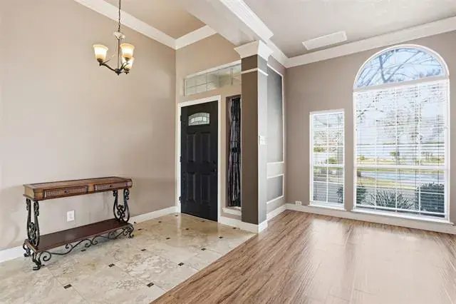 The home features fresh interior paint, updated HVAC and ductwork, and a new hot water heater and new garage door opener for added peace of mind. The kitchen boasts high-end stainless steel appliances and opens to a spacious family room anchored by a cozy gas fireplace that is perfect for gathering and entertaining. Two versatile front rooms provide flexible space for a home office, formal dining, or additional living area. Bedrooms are generously sized, and the bathrooms have been stylishly updated with marble and travertine finishes. The elegant entryway showcases marble flooring for a grand first impression.