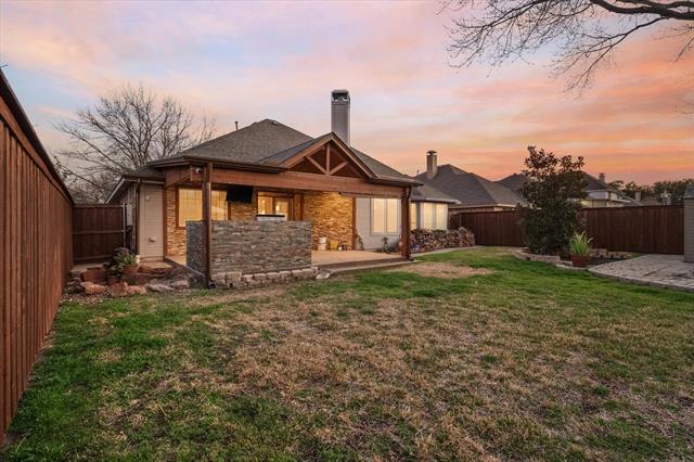Inside, find extensive updates and timeless finishes. Kitchen has been tastefully refreshed with custom cabinetry, granite counters, large island, breakfast bar, updated appliances – all designed to make both everyday meals and entertaining effortless. Granite continues in baths, where updates create a cohesive, elevated feel. Spacious primary suite offers relaxing retreat' w fully updated bath featuring dual sinks, garden tub, separate shower and walk-in closet. Entire home w tile flooring' adding durability, easy maintenance and clean, polished look. Open living area w fireplace flows seamlessly to kitchen, breakfast space creating a warm. inviting setting for gathering w family, friends. Outside you’ll discover one of home’s standout features – covered patio w a fully equipped outdoor kitchen w Bull grill and refrigerator' perfect for year-round Texas entertaining. Three custom water features add charm and tranquil ambiance. Backyard also backs directly to HOA green space, includes private gate add space to enjoy.