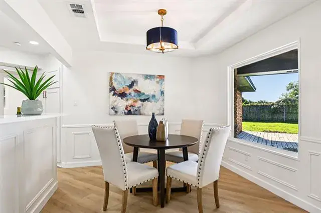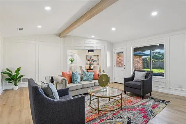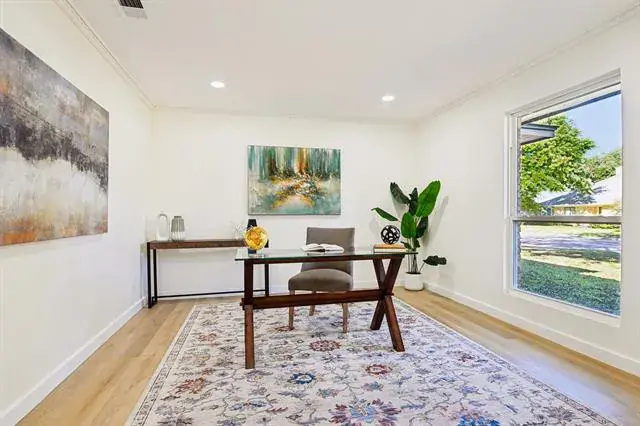 Nestled in the peaceful Huntwick neighborhood of Arlington, 4300 Kingswick Dr offers a perfect mix of space, comfort, and luxury. This charming 4 bedroom 3 full bath single-story home with Office and Formal Dining features a flowing open layout with generous living areas, a cozy gas fireplace, and large windows that fill the home with natural light. The spacious kitchen and dining area make entertaining easy, while the sizable backyard provides plenty of room for outdoor gatherings, gardening, or simply relaxing under the shade of mature trees. With ample interior and exterior living space, this property is ideal for anyone seeking a completely renovated home with upscale finishes in a quiet, established community—just minutes from parks, schools, and shopping in southwest Arlington. Enjoy the seclusion of being on over a quarter acre on a corner lot with only 1 neighbor! This home will not last lone and has been priced to sell!