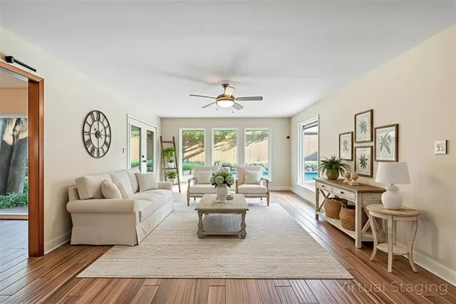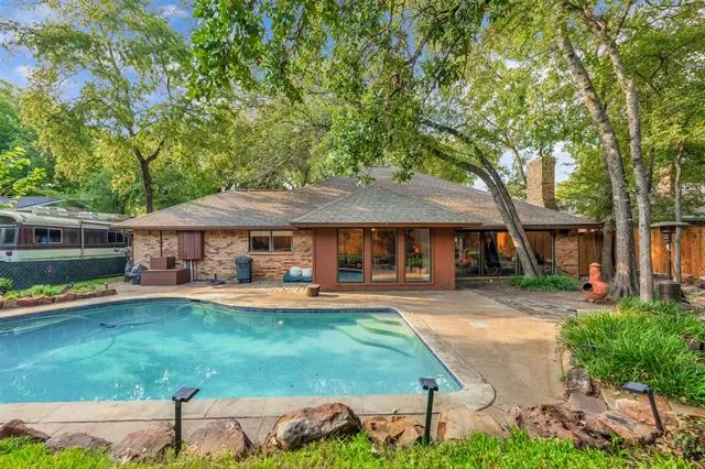 Tucked on a quiet, tree-lined street in a highly desired area of Arlington, this 4-bed, 2-bath home with beautiful Chicago Fire Brick blends comfortable living with resort-style outdoor amenities. Tall ceilings and large, beautiful windows flood the main living areas with natural light, while a separate dining room opens seamlessly to the living room—perfect for gatherings and everyday flow. A versatile bonus living room provides flexible space for a game room or media room. The private primary suite features a spa-inspired bath with heated floors—an everyday luxury you’ll appreciate year-round. Outside, your backyard oasis awaits with a heated inground pool, lush landscaping, and an abundance of mature trees that create shade and a serene setting for relaxing or entertaining. The backyard also has space for RV parking and a 50amp plug. Additional highlights include: flexible floor plan with multiple living areas, generous storage, and thoughtfully placed windows that bring the outdoors in. This is the peaceful retreat you’ve been searching for—close to everyday conveniences yet perfectly positioned for quiet living.