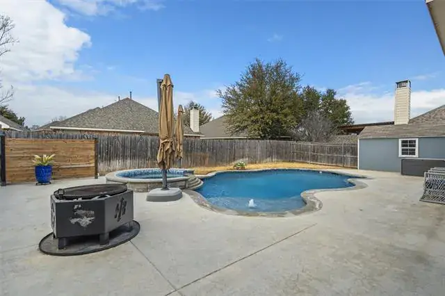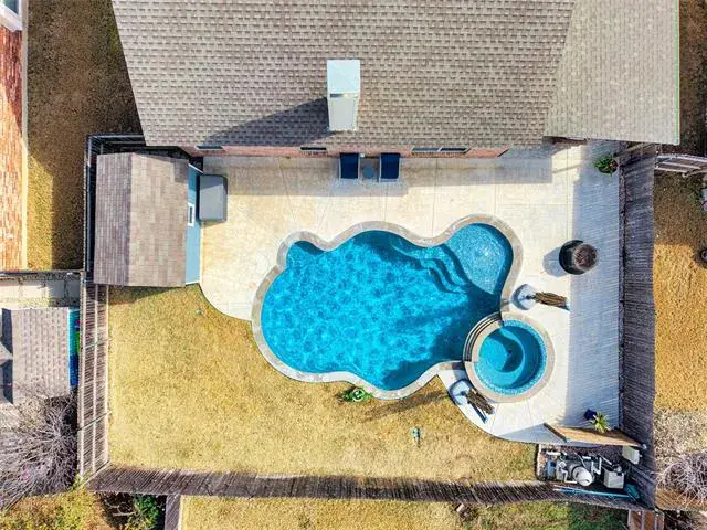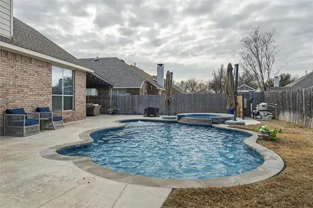 Welcome to 7805 Quiet Waters Dr in the shadows of Lake Arlington. Offering nearly 2,600 sqft ,this home delivers flexibility, layout and the outdoor retreat todays buyers are searching for. Step outside and you will quickly see what makes this property special. The sparkling 2023 Emerald custom pool and spa with Tier 4 Pebbletech plaster helps create your own private oasis, perfect for cooling off during Texas summers, unwinding after a long day or hosting unforgettable gathering with family and friends. Whether you love weekend BBQs on your custom patio area, pool parties or quiet mornings with coffee, this outdoor space truly delivers. Inside, the home continues to impress with a stunning island kitchen with gas cooking, Tier 4 granite tops, glass tile splash along with endless counter and storage space. Opening off the kitchen you are greeted by inviting den with wood tile floors and accented by a natural stone fireplace with ceramic gas logs. Our first level master suite will accommodate the largest of bedroom sets nicely and sports an accented wall and smart blinds, our remodeled ensuite bath offers a double walk-in shower, upgraded vanity and spacious walk-in closet. Looking for a little peace and quiet away from the kids, look no further than upstairs. 3 bedrooms up all offering loads of floor space and walk-in closets. Our upstairs living area is perfect for gaming, relaxing and all things kids. As an added bonus there is walk out attic accessible from the game room. Needing an office, our private formal dinning is up to the task, would also make a great home school area. Beyond the home itself, you will appreciate the sense of community and convenience this location offers, with easy access to shopping, dining, parks and majors commuting routes while still enjoying the comfort of a peaceful neighborhood setting. Enjoy the Martin HS attendance zone as a bonus.