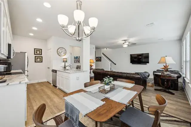 Charming End-Unit Townhome with a MASSIVE Backyard! Welcome to this beautifully maintained end-unit townhome, complete with an extended driveway and a two-car garage. Step inside to a warm and inviting entryway featuring rich hardwood floors, neutral-toned walls, and elegant thick baseboards. Enjoy the bright and open layout with a spacious living room highlighted by a wall of windows that floods the space with natural light. The seamless flow leads to a cozy breakfast nook, accented with a stylish chandelier, and into the modern kitchen. Here, you’ll find gleaming quartz countertops, crisp white cabinetry, and sleek stainless steel appliances — a perfect setting for everyday meals or entertaining. Retreat to the generously sized Primary Suite, large enough for a sitting area, and unwind in the en-suite bath, complete with a separate shower. Two additional well-sized guest bedrooms offer flexible space for family, guests, or a home office. Step outside to the HUGE backyard — a rare find in townhome living — ideal for outdoor gatherings, gardening, or just relaxing in your private outdoor oasis. Don’t miss this light-filled, move-in ready gem with incredible indoor and outdoor living space!