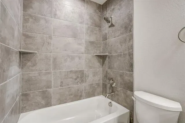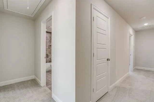 Upstairs, the tranquil primary suite feels like a private spa retreat with its expansive double vanity, upscale 12 × 24 tile detailing, roomy glass-enclosed shower, and generous walk-in closet. Two additional bedrooms share a well-appointed bath with dual sinks, while the nearby utility room keeps laundry day conveniently close at hand.