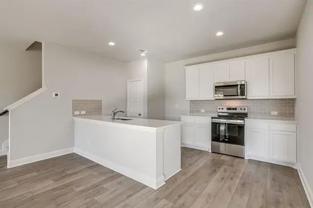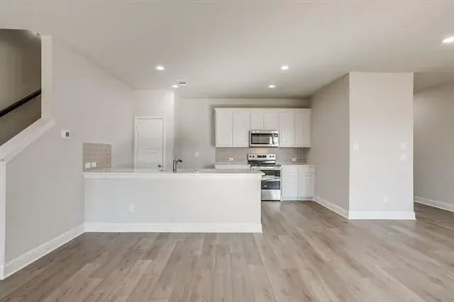 Entertain with ease. The open-concept main level showcases durable luxury vinyl plank flooring and a chef-inspired kitchen—complete with an oversized island, stainless steel appliances, custom-painted cabinetry, subway-tile backsplash, gleaming quartz countertops, and a walk-in pantry. A chic powder bath adds extra convenience.