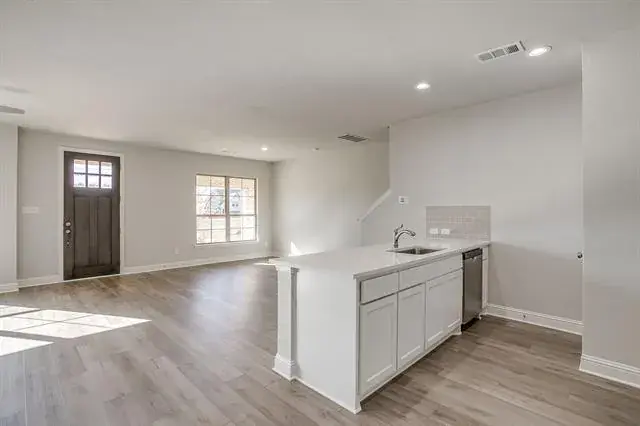 Discover effortless elegance in this modern townhome at Knight’s Landing on Eden Rd. A timeless mix of brick and stone, a striking 8-foot Craftsman door, and a rear-entry two-car garage make a memorable first impression.