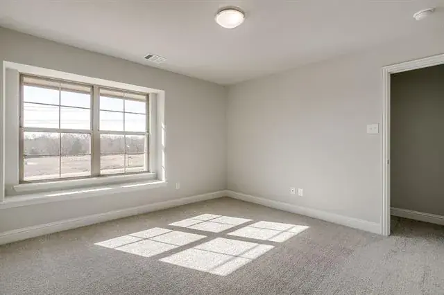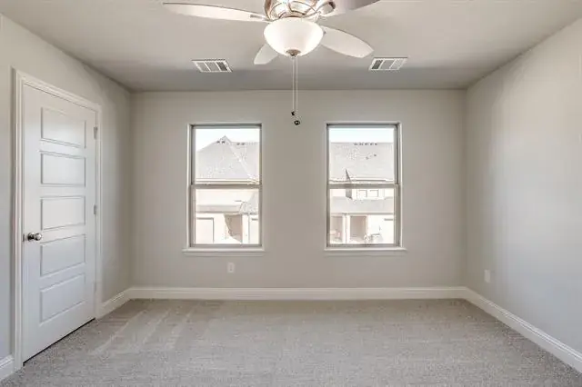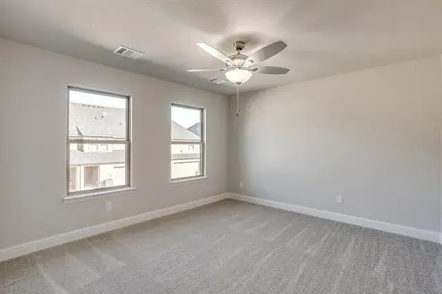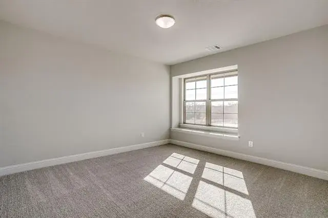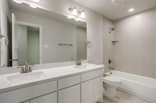 Retreat upstairs. Your serene primary suite feels like a private spa with an expansive double vanity, designer 12 × 24 tile, a glass-enclosed shower, and a generous walk-in closet. Two additional bedrooms share a well-appointed bath with dual sinks, while an upstairs utility room keeps laundry day simple.