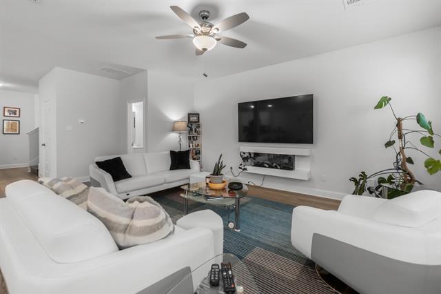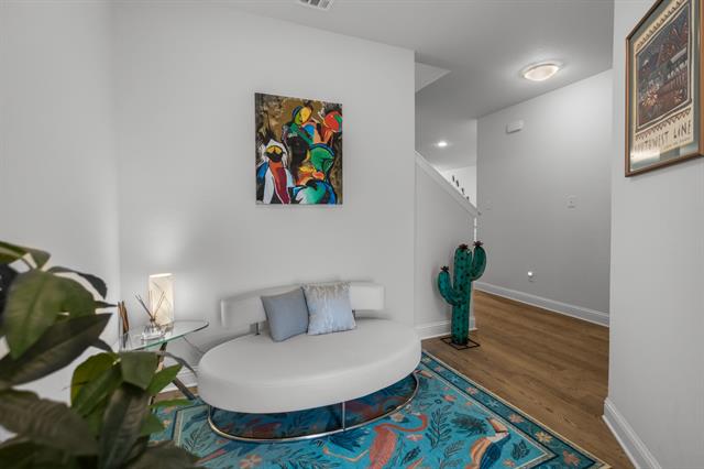 Step into this striking two-story home where modern design meets elevated everyday living. A bold front entry with a contemporary glass-panel door creates an unforgettable first impression, opening to a light-filled interior defined by warm wood floors and a seamless open layout. Offering the space and feel of a single-family home, this residence stands apart from typical townhomes.