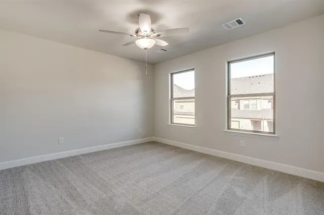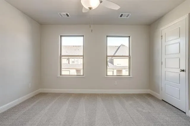 Upstairs, the tranquil primary suite feels like a private spa retreat with its expansive double vanity, upscale 12 × 24 tile detailing, roomy glass-enclosed shower, and generous walk-in closet. Two additional bedrooms share a well-appointed bath with dual sinks, while the nearby utility room keeps laundry day conveniently close at hand.