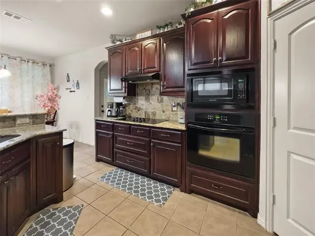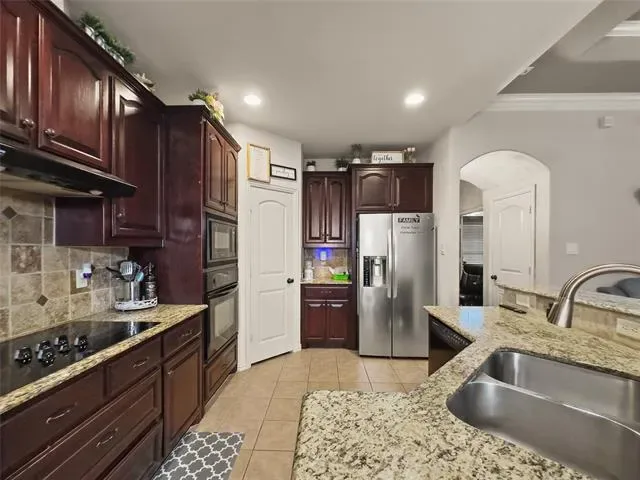 Welcome to this beautiful 3 bedroom, 3 full bath home located in a private gated community. Step inside to an inviting arched entryway with rich wood flooring that sets the tone for the rest of the home. The open floor plan features living area with a cozy fireplace and vaulted ceiling, creating a comfortable and inviting space perfect for both everyday living and entertaining. The kitchen is designed to impress with granite countertops, tile backsplash, and ample cabinetry ideal for cooking, hosting, and everything in between. The owner’s suite is conveniently located downstairs, offering privacy and comfort with its own vaulted ceiling. The ensuite bathroom features a garden tub, separate shower with his and her vanities, providing a functional and relaxing retreat. This home stands out with its unique and flexible layout, perfect for remote work or multi-generational living. A downstairs office leads to a private upstairs retreat, where you’ll find a bedroom, full bathroom, loft space, and a built-in countertop with a space for mini refrigerator, ideal for a home office, guest suite, or personal living space. Enjoy a quiet, peaceful neighborhood with lifestyle-enhancing amenities, including a community swimming pool and scenic pond. HOA covers front and backyard lawn care, giving you more time to relax and enjoy your home.