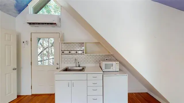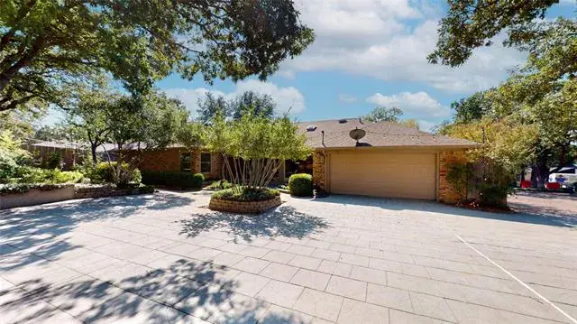 The property includes a separate garage studio apartment. Located on a heavily wooded and landscaped site. Home is Chicago brick with a Class 4 shingle roof and a circular drive in front. The main house is a 4 bedroom, 2.5 bath with a living room, sun room, kitchen, breakfast area, dining room, and entry gallery. Recent updates include new paint, granite counter tops, HVAC, water heater, insulated windows, plumbing fixtures, light fixtures and new locks, hinges and hardware. New wood flooring throughout the house with the kitchen, breakfast, sunroom and baths finished in travertine porcelain tile. The master bath has a shower and a jacuzzi whirlpool bath tub and his and hers lavatories and closets. The attached 2 car garage has wall cabinets added, HVAC and space for an extra refrigerator. Exterior has new gutters and down spouts, with a stamped concrete rear patio of around 2000 sf. which connects the main house to the apartment. The lawn is irrigated. The house is bright inside and faces south. The neighborhood is very quiet with no train or plane noise and very few cars use the street. Behind the house is a 2 story building with a studio apartment over a 2 car garage. The apartment has a large bedroom and living area with a full bath, kitchenette with refrigerator, microwave and a new mini split HVAC system. Perfect for rental if so desired. The secondary garage has a work bench, sink, laminate wall cabinets and AC. The back yard has a 8’ high cedar fence and a small tool shed behind the apartment. The house is 2892 sf plus the garage.The apartment adds another 552 sf up and down. The location is minutes away from Lake Arlington, the new Senior Center, great schools, and easy access to I20, I30, Green Oaks Blvd and Hwy 287. Only a mile to banks, restaurants, grocery stores, etc.