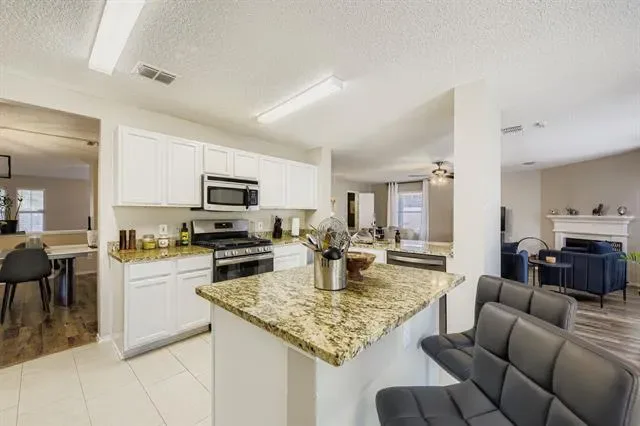 Welcome to 7107 Chambers Creek Lane, a spacious and beautifully updated home located in the desirable Lake Port Meadows community of Arlington. This two-story residence offers 4 bedrooms, 2.5 bathrooms, and 3,261 sq. ft. of living space on a well-sized lot. Inside, you’ll find an open and flexible floor plan featuring three living areas, including a large upstairs game room perfect for entertaining or relaxing with family. Previous updates include flooring, granite countertops, interior paint, and updated lighting, giving the home a modern, move-in-ready feel. The kitchen offers ample counter space and storage, while the main living area is anchored by a cozy fireplace. Upstairs, the generously sized bedrooms provide comfort and privacy, and the primary suite includes a spacious layout with plenty of natural light. Outside, the property boasts a brick exterior, 2-car garage, and fenced backyard, ideal for gatherings and outdoor living. Located within Mansfield ISD, this home is zoned for highly rated schools including Thelma Jones Elementary, James Coble Middle, and Timberview High School. Conveniently situated near shopping, dining, and major highways, it offers both comfort and accessibility.