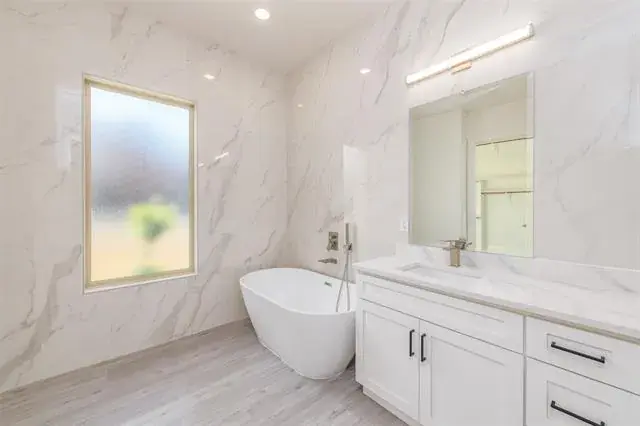 This newly built four-bedroom, four-and-a-half-bathroom home combines spaciousness with modern luxury. The interior boasts an open floor plan, providing a seamless flow between rooms, while each bedroom is accompanied by its own private bath for added convenience. Stepping outside, a generous backyard patio awaits, perfect for entertaining or enjoying quiet moments outdoors. The fenced yard not only ensures privacy but also creates a secure space for both relaxation and recreation.