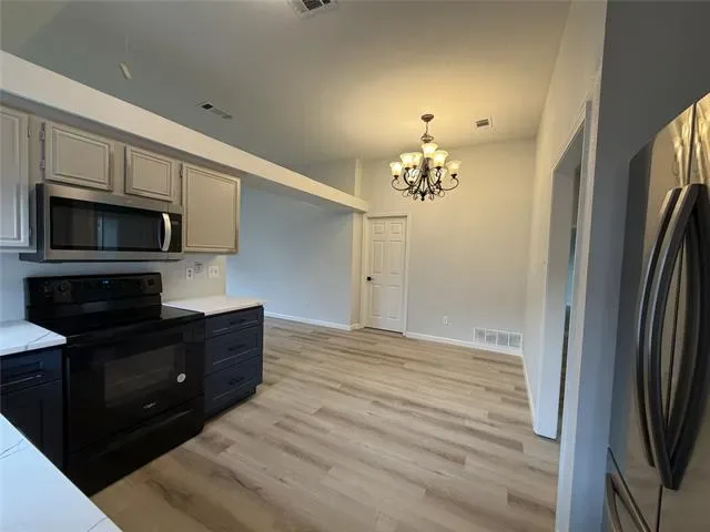 MOVE IN READY, Fully updated with 3 bedrooms, two baths, new paint, new roof, new floor, new kitchen and bathrooms.