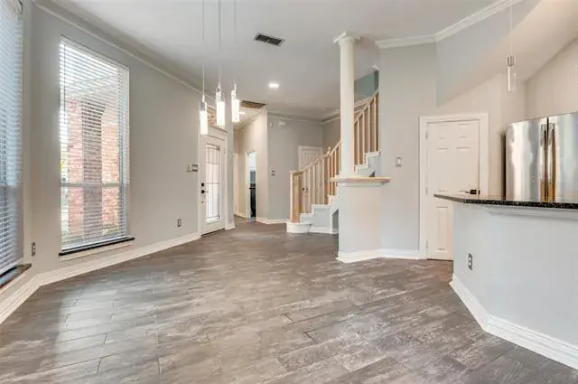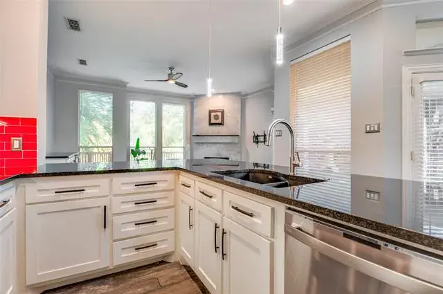 Welcome to 529 Lochngreen, a beautifully maintained townhome in the gated Lochngreen Village community offering low-maintenance living in a prime Arlington location. The light-filled open floor plan features spacious living and dining areas, high ceilings, and wood-look floors throughout the main level. The kitchen offers abundant white cabinetry, granite countertops, and breakfast bar seating that flows seamlessly to the living room and private patio—perfect for entertaining. The large primary suite boasts a walk-in closet and ensuite bath with dual sinks, soaking tub, and separate shower. Secondary bedrooms are generous in size and ideal for guests or a home office. Enjoy the convenience of an attached garage, HOA-maintained exterior, and beautifully landscaped surroundings. Centrally located with quick access to I-30, shopping, dining, Lake Arlington, and the Entertainment District. Move-in ready and easy to love!