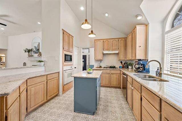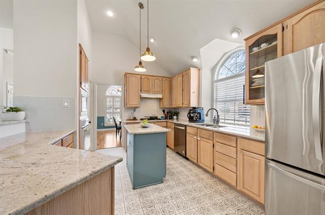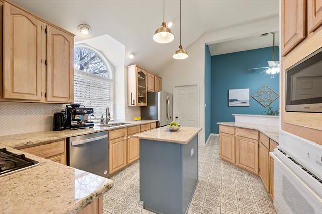 Cable TV Available, Chandelier, Decorative Lighting, Double Vanity, Eat-in Kitchen, Granite Counters, High Speed Internet Available, Kitchen Island, Open Floorplan, Vaulted Ceiling(s), Wainscoting, Walk- In Closet(s)