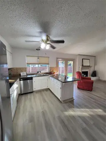 Precious 3.2.2 totally remodeled and move-in ready. Nestled in the heart of Arlington’s Entertainment District and accented by the trees of beautiful Lost Creek,this jewel is within walking distance of Elementary,Charter and Jr. High schools.Our public library, Krogers on Ascension, Ozzie Odom Rec Center and Legacy Park make this the ideal location for convenience. Walking under the beautiful new pergola and through the front door, you are greeted by lovely new luxury plank flooring, which accents the new neutrally painted walls and striking trim. The open Den, Formal Dining Room, and gorgeously trimmed fireplace and mantel will take your breath away. The sparkling white kitchen with custom built-in shelves and drawers, and big shiny window overlooking the large covered patio brings 10,000 sq. ft. of nature into your home. Large kitchen nook and big laundry room with garage access are added extras. The Oversized master with 2 walk-in closets, redone baths with new pleated shades thru-out. Two extra-large bedrooms are great for kids and or office.Two fabulous large trees on the corner lot make this a showstopper. Seller may consider some first-time buyer assistance at full price.Survey available. call agent for details.