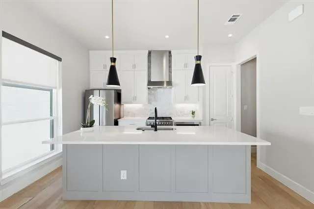 Live in the heart of the downtown Arlington Entertainment District, just minutes from UT Arlington, Texas Live!, Globe Life Field and Globe Life Park, AT&'T Stadium, boutique shops, and local dining—with easy access to both Fort Worth and Dallas. This luxury, two-story townhome in Main 7 Urban Villas offers 3 bedrooms, 2.5 baths, an attached two-car garage, and a small fenced grassy area in the front. A coveted interior corner location provides abundant natural light through oversized windows and the added privacy of not facing or backing to a busy street. The open-concept kitchen overlooks the living area and features a large island, gas cooktop, electric oven, refrigerator, microwave, and a separate pantry. Additional highlights include wood flooring, plush carpet, quartz countertops, custom roller shades, and a full-size washer and dryer that convey with the property—making this an ideal home for comfort, style, and unbeatable access to Arlington’s premier entertainment and lifestyle destinations.